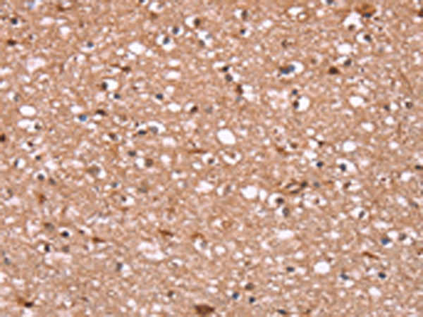The image is immunohistochemistry of paraffin-embedded Human brain tissue using P11759(FBXO31 Antibody) at dilution 1/40. (Original magnification: ×200) |