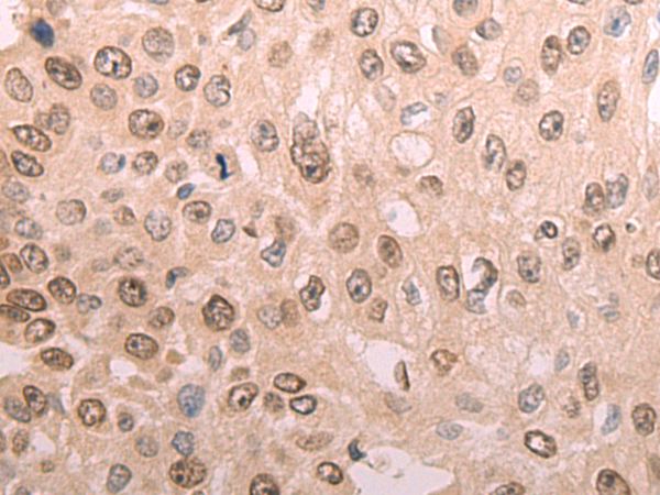 The image is immunohistochemistry of paraffin-embedded Human esophagus cancer tissue using P03493(FBXO42 Antibody) at dilution 1/50. (Original magnification: ×200) |