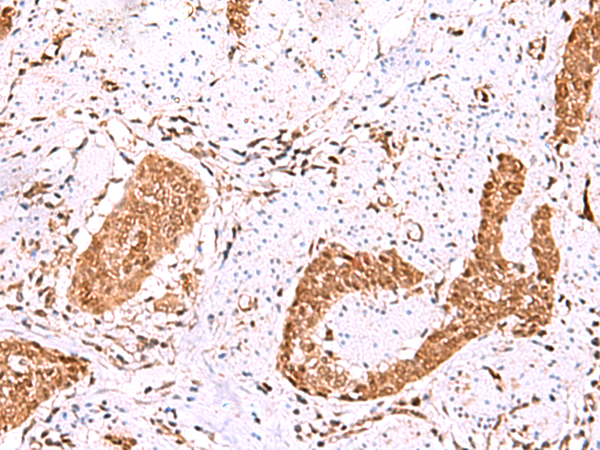 The image is immunohistochemistry of paraffin-embedded Human esophagus cancer tissue using P03146(FDPS Antibody) at dilution 1/60. (Original magnification: ×200) |