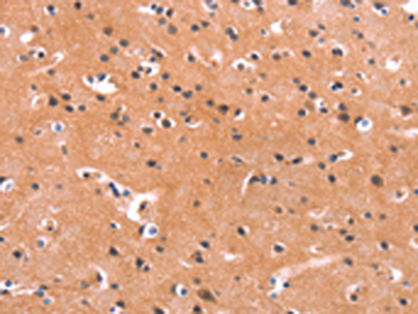 The image is immunohistochemistry of paraffin-embedded Human brain tissue using P11761(FEM1A Antibody) at dilution 1/20. (Original magnification: ×200) |