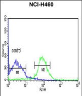 FKBP9 Antibody (N-term) (Cat. #P30388) flow cytometric analysis of NCI-H460 cells (right histogram) compared to a negative control cell (left histogram).FITC-conjugated goat-anti-rabbit secondary antibodies were used for the analysis. |