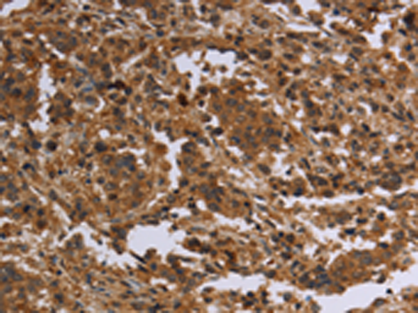 The image is immunohistochemistry of paraffin-embedded Human liver cancer tissue using P04879(FLG Antibody) at dilution 1/20. (Original magnification: ×200) |