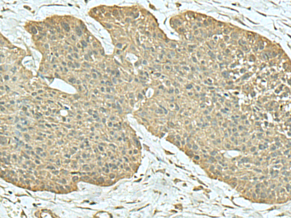 The image is immunohistochemistry of paraffin-embedded Human esophagus cancer tissue using P06816(FN3KRP Antibody) at dilution 1/55. (Original magnification: ×200) |