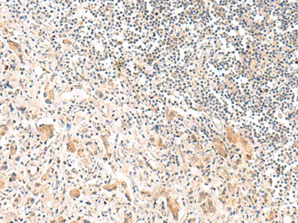 The image is immunohistochemistry of paraffin-embedded Human tonsil tissue using P13420(FNBP1L Antibody) at dilution 1/30. (Original magnification: ×200) |