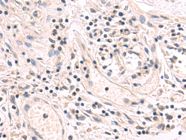 The image is immunohistochemistry of paraffin-embedded Human breast cancer tissue using P02732(FOLR1 Antibody) at dilution 1/55. (Original magnification: ×200) |