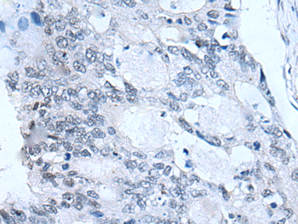 The image is immunohistochemistry of paraffin-embedded Human colorectal cancer tissue using P12730(FSHB Antibody) at dilution 1/30. (Original magnification: ×200) |