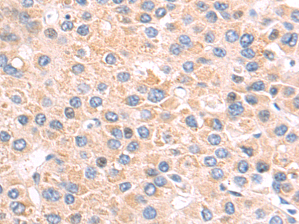 The image is immunohistochemistry of paraffin-embedded Human liver cancer tissue using P04888(FXR1 Antibody) at dilution 1/50. (Original magnification: ×200) |