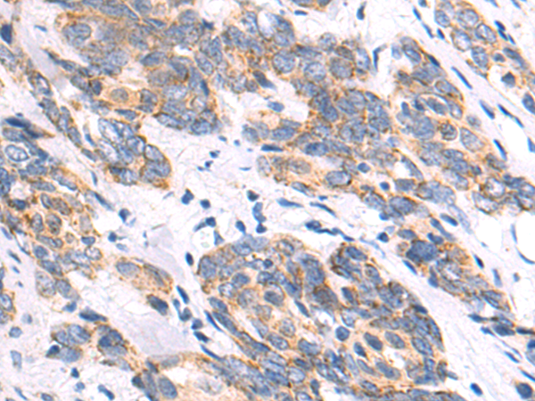 The image is immunohistochemistry of paraffin-embedded Human cervical cancer tissue using P04888(FXR1 Antibody) at dilution 1/50. (Original magnification: ×200) |