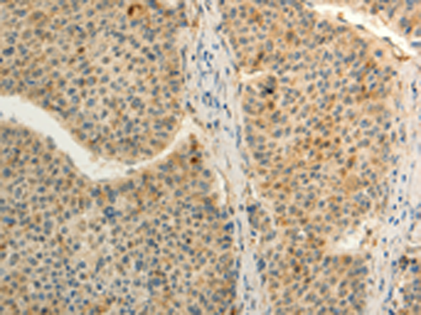 The image is immunohistochemistry of paraffin-embedded Human liver cancer tissue using P11408(FZD8 Antibody) at dilution 1/50. (Original magnification: ×200) |
