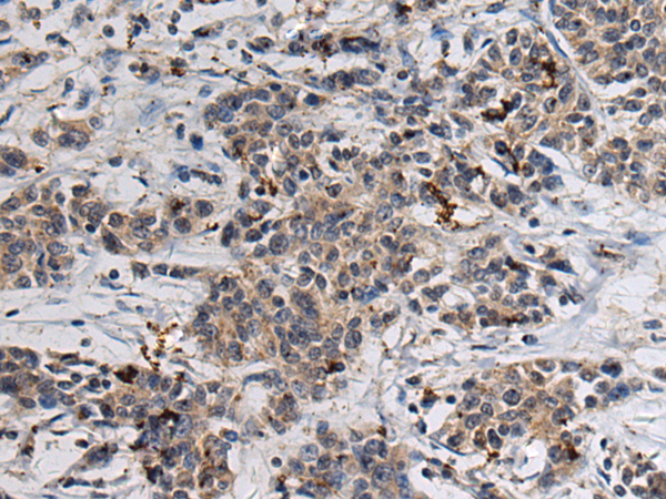 The image is immunohistochemistry of paraffin-embedded Human colorectal cancer tissue using P03508(GABARAP Antibody) at dilution 1/140. (Original magnification: ×200) |