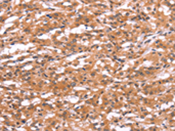 The image is immunohistochemistry of paraffin-embedded Human thyroid cancer tissue using P04891(GABRA1 Antibody) at dilution 1/30. (Original magnification: ×200) |