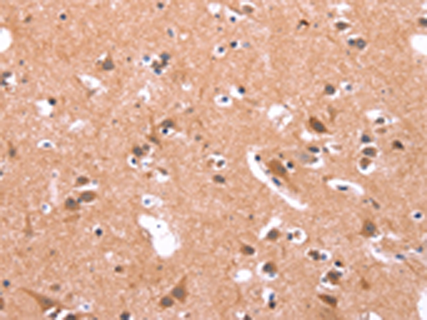 The image is immunohistochemistry of paraffin-embedded Human brain tissue using P04891(GABRA1 Antibody) at dilution 1/30. (Original magnification: ×200) |