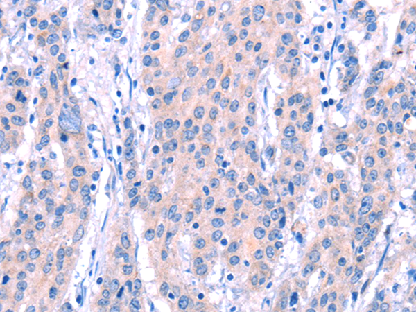 The image is immunohistochemistry of paraffin-embedded Human gastric cancer tissue using P04893(GALC Antibody) at dilution 1/15. (Original magnification: ×200) |