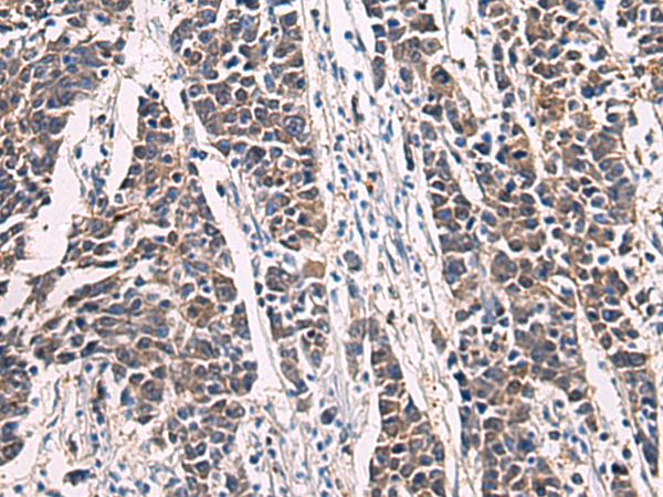 The image is immunohistochemistry of paraffin-embedded Human breast cancer tissue using P03382(GALM Antibody) at dilution 1/80. (Original magnification: ×200) |