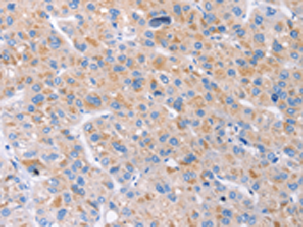 The image is immunohistochemistry of paraffin-embedded Human liver cancer tissue using P11780(GAS1 Antibody) at dilution 1/20. (Original magnification: ×200) |
