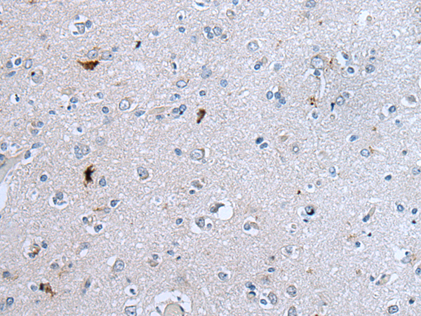 The image is immunohistochemistry of paraffin-embedded Human brain tissue using P05856(GAST Antibody) at dilution 1/30. (Original magnification: ×200) |