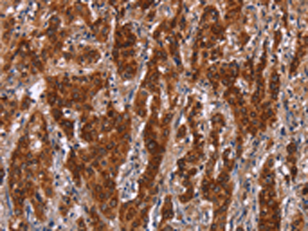 The image is immunohistochemistry of paraffin-embedded Human gastric cancer tissue using P04902(GCKR Antibody) at dilution 1/50. (Original magnification: ×200) |