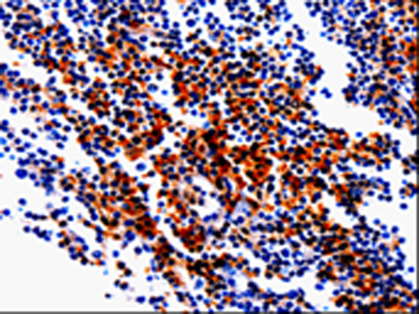 The image is immunohistochemistry of paraffin-embedded Human tonsil tissue using P06949(GDI1 Antibody) at dilution 1/20. (Original magnification: ×200) |
