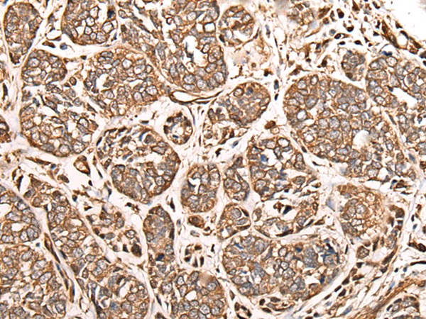 The image is immunohistochemistry of paraffin-embedded Human esophagus cancer tissue using P12584(GFAP Antibody) at dilution 1/35. (Original magnification: ×200) |