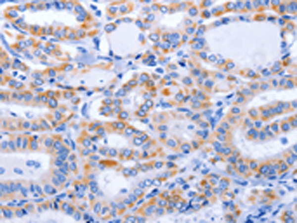 The image is immunohistochemistry of paraffin-embedded Human thyroid cancer tissue using P07072(GFER Antibody) at dilution 1/50. (Original magnification: ×200) |