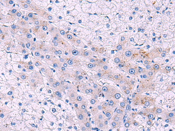 The image is immunohistochemistry of paraffin-embedded Human liver cancer tissue using P03986(GFRA2 Antibody) at dilution 1/20. (Original magnification: ×200) |