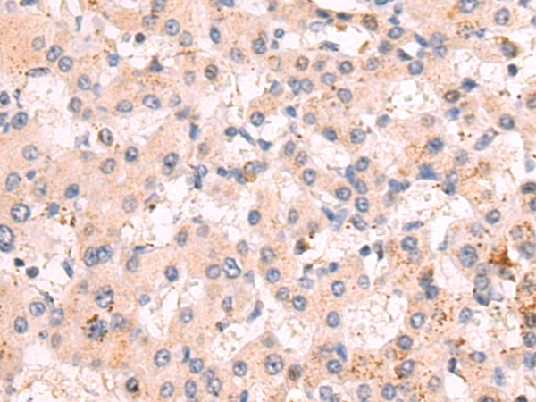 The image is immunohistochemistry of paraffin-embedded Human liver cancer tissue using P03987(GFRA3 Antibody) at dilution 1/50. (Original magnification: ×200) |