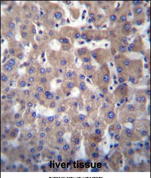 GGT2 Antibody (N-term) (Cat. #P31174)immunohistochemistry analysis in formalin fixed and paraffin embedded human liver tissue followed by peroxidase conjugation of the secondary antibody and DAB staining.This data demonstrates the use of GGT2 Antibody (N-term) for immunohistochemistry. Clinical relevance has not been evaluated. |