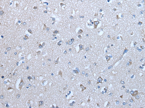 The image is immunohistochemistry of paraffin-embedded Human brain tissue using P07230(GJA1 Antibody) at dilution 1/50. (Original magnification: ×200) |