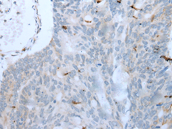The image is immunohistochemistry of paraffin-embedded Human colorectal cancer tissue using P05858(GKN1 Antibody) at dilution 1/30. (Original magnification: ×200) |