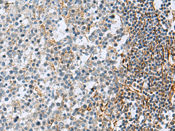 The image is immunohistochemistry of paraffin-embedded Human tonsil tissue using P11792(GLS Antibody) at dilution 1/70. (Original magnification: ×200) |