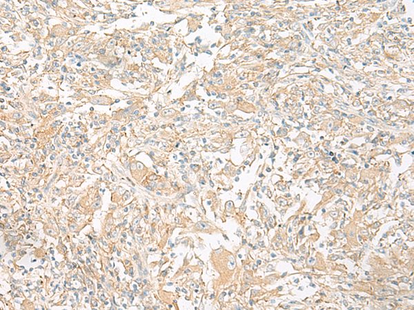 The image is immunohistochemistry of paraffin-embedded Human esophagus cancer tissue using P13469(GP6 Antibody) at dilution 1/40. (Original magnification: ×200) |