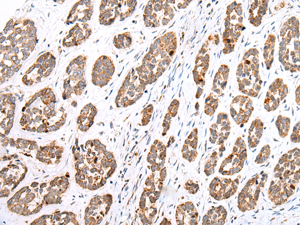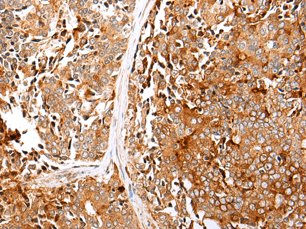 The image is immunohistochemistry of paraffin-embedded Human esophagus cancer tissue using P05663(GPC1 Antibody) at dilution 1/25. (Original magnification: ×200) |