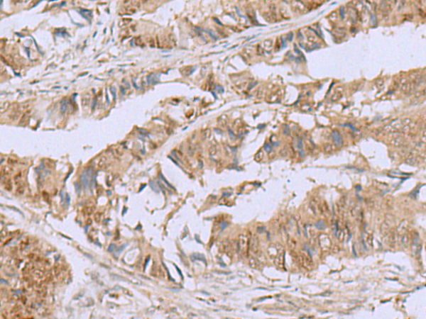 The image is immunohistochemistry of paraffin-embedded Human colorectal cancer tissue using P12646(GPC3 Antibody) at dilution 1/30. (Original magnification: ×200) |