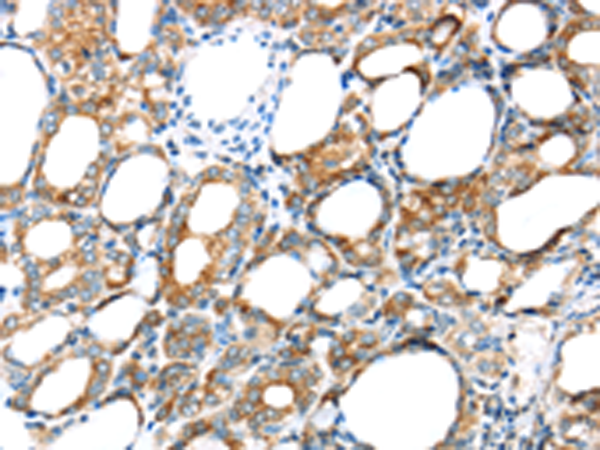 The image is immunohistochemistry of paraffin-embedded Human thyroid cancer tissue using P11800(GPD2 Antibody) at dilution 1/20. (Original magnification: ×200) |