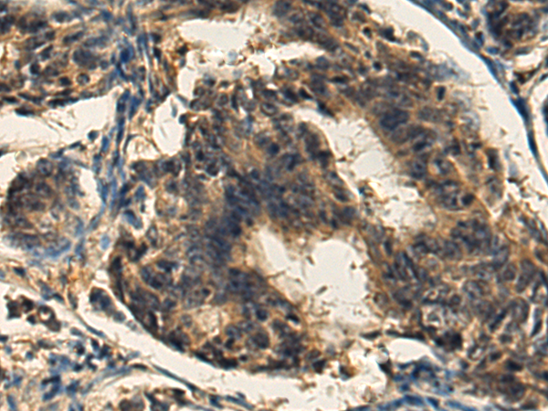 The image is immunohistochemistry of paraffin-embedded Human colorectal cancer tissue using P03488(GPLD1 Antibody) at dilution 1/120. (Original magnification: ×200) |
