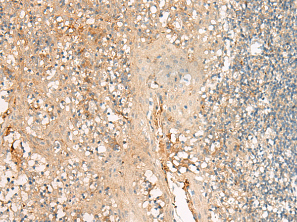 The image is immunohistochemistry of paraffin-embedded Human cervical cancer tissue using P06617(GPR27 Antibody) at dilution 1/25. (Original magnification: ×200) |
