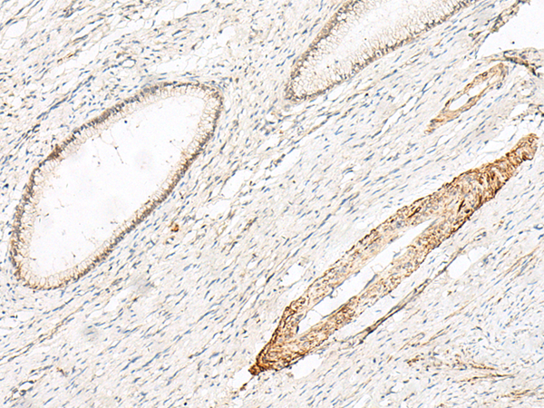 The image is immunohistochemistry of paraffin-embedded Human cervical cancer tissue using P06630(GPRC6A Antibody) at dilution 1/30. (Original magnification: ×200) |