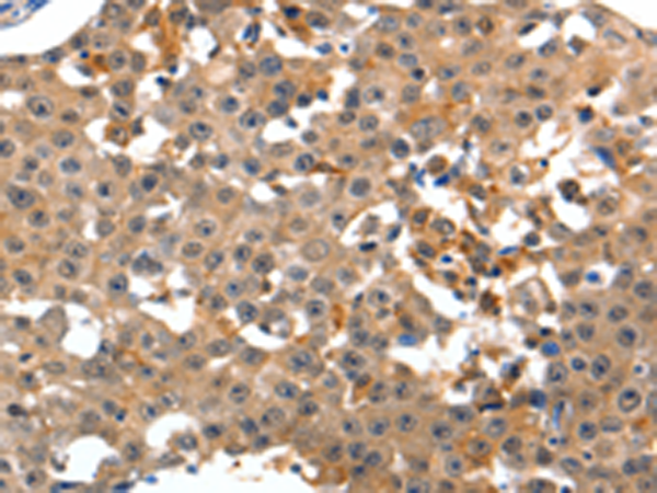 The image is immunohistochemistry of paraffin-embedded Human breast cancer tissue using P04011(GRM1 Antibody) at dilution 1/15. (Original magnification: ×200) |
