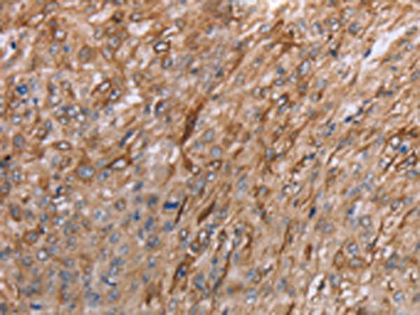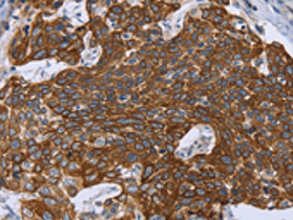 The image is immunohistochemistry of paraffin-embedded Human esophagus cancer tissue using P03957(GRPR Antibody) at dilution 1/40. (Original magnification: ×200) |