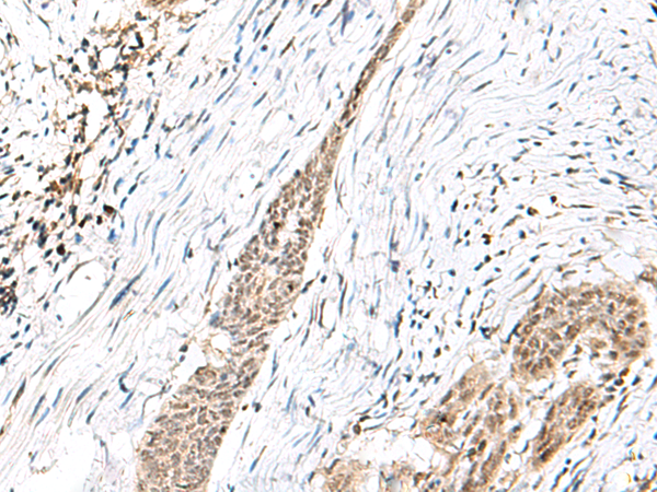 The image is immunohistochemistry of paraffin-embedded Human esophagus cancer tissue using P06660(GSC Antibody) at dilution 1/20. (Original magnification: ×200) |