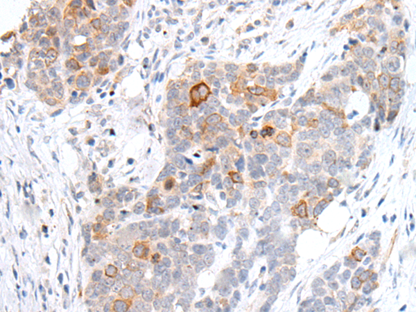 The image is immunohistochemistry of paraffin-embedded Human thyroid cancer tissue using P05782(GSK3B Antibody) at dilution 1/20. (Original magnification: ×200) |