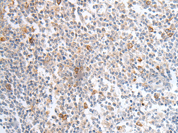 The image is immunohistochemistry of paraffin-embedded Human tonsil tissue using P05782(GSK3B Antibody) at dilution 1/20. (Original magnification: ×200) |
