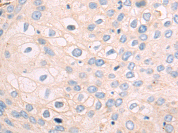 The image is immunohistochemistry of paraffin-embedded Human cervical cancer tissue using P03456(GSTM1 Antibody) at dilution 1/100. (Original magnification: ×200) |