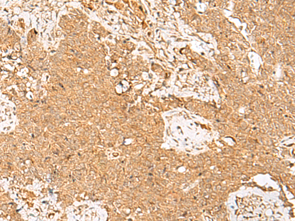 The image is immunohistochemistry of paraffin-embedded Human ovarian cancer tissue using P13540(GSTM2 Antibody) at dilution 1/30. (Original magnification: ×200) |