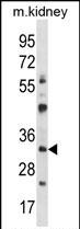 GTF2B Antibody (N-term) (Cat. #P31453) western blot analysis in mouse kidney tissue lysates (35ug/lane).This demonstrates the GTF2B antibody detected the GTF2B protein (arrow). |