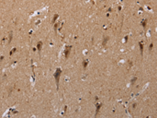 The image is immunohistochemistry of paraffin-embedded Human brain tissue using P04715(GTF2I Antibody) at dilution 1/40. (Original magnification: ×200) |
