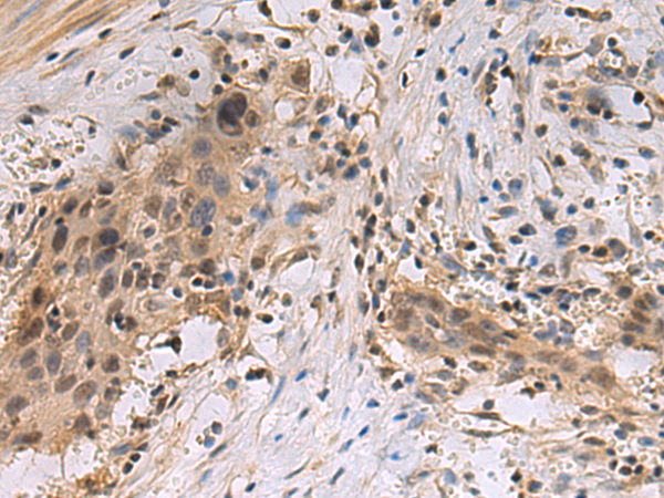 The image is immunohistochemistry of paraffin-embedded Human esophagus cancer tissue using P13544(GTF3C4 Antibody) at dilution 1/160. (Original magnification: ×200) |
