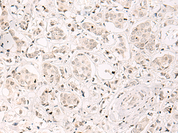 The image is immunohistochemistry of paraffin-embedded Human breast cancer tissue using P13573(H1-3 Antibody) at dilution 1/30. (Original magnification: ×200) |