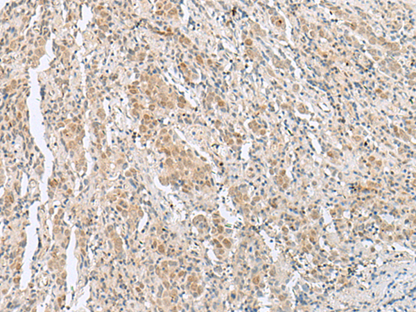 The image is immunohistochemistry of paraffin-embedded Human cervical cancer tissue using P02987(H2BC12 Antibody) at dilution 1/60. (Original magnification: ×200) |