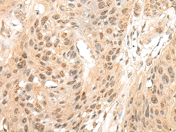 The image is immunohistochemistry of paraffin-embedded Human esophagus cancer tissue using P06297(HCRT(Orexin-B) Antibody) at dilution 1/20. (Original magnification: ×200) |